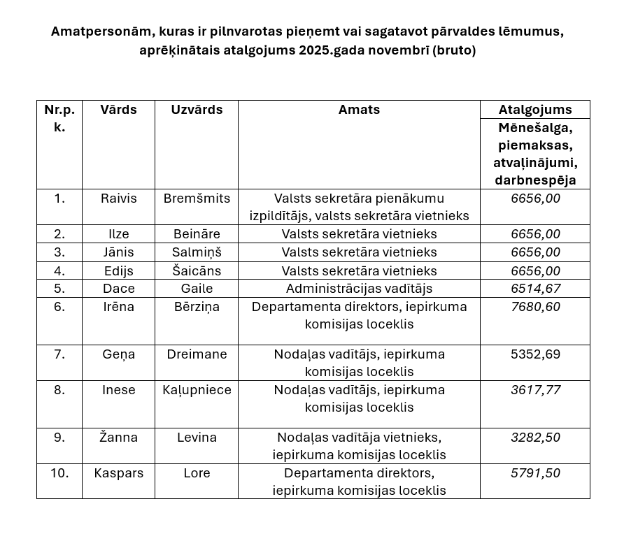 Amatpersonu atalgojums 11.2025