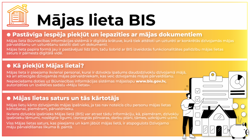 Kā zināms, no 2023. gada 1. marta Mājas lietas kārtošanas BIS ir obligāta. Mājas lieta papīra formā jau ir pastāvējusi līdz šim, taču šobrīd ar BIS izveidotās funkcionalitātes palīdzību Mājas lietas saturs tiek pārnests digitālā vidē. Līdz ar to Mājas lieta būs digitāla krātuve, kurā tiks attēloti un uzturēti ar konkrētās dzīvojamās mājas pārvaldīšanu un uzturēšanu saistītie dati, informācija un dokumenti.